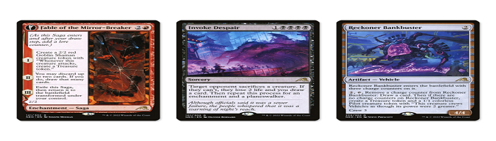 A WOTC anunciou hoje agora a pouco que as cartas Fable of the mirror-breaker, Invoke despair e Reckoner bankbuster estão banidas do formato Standard.