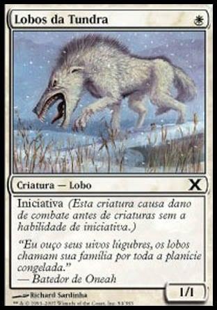 A habilidade iniciativa é bem comum na cor branca. A iniciativa nos faz imaginar uma criatura que tem a preferência em atacar primeiro antes da outra. Imagine um soldado portando uma lança? Ele vai atacar primeiro e caso mate a outra criatura, o soldado não é atacado por ela e fica sem sofrer dano. Logo abaixo tem a carta Lobos da tundra e ela tem iniciativa provavelmente porque os lobos são rápidos. Na mecânica do jogo MTG depois de designado os bloqueadores, vem a fase de dano da iniciativa pra depois vir a fase de dano das criaturas não iniciativa.